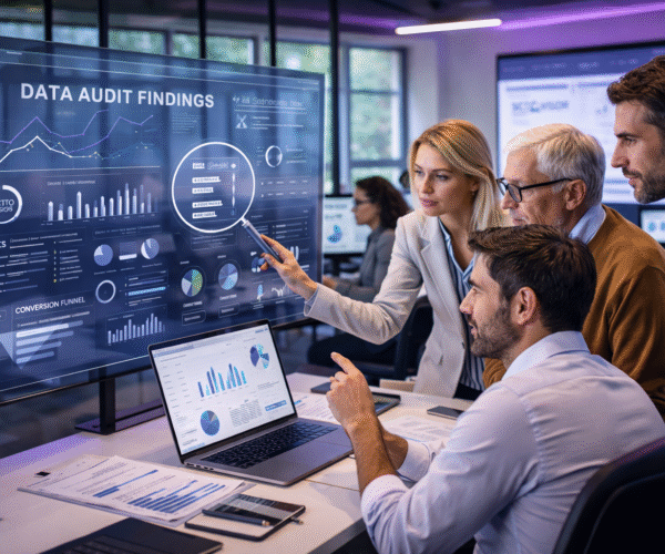 A digital audit evaluates your website performance, user experience, conversion funnels, traffic sources, branding consistency, and technical infrastructure. It identifies weaknesses and growth opportunities across your entire digital ecosystem.